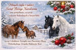 Pełnych ciepła i radości Świąt Bożego Narodzenia oraz pomyślności, szczęścia i sukcesów hodowlanych w Nowym Roku życzą członkowie Zarządu oraz pracownicy biura Dolnośląskiego Związku Hodowców Koni